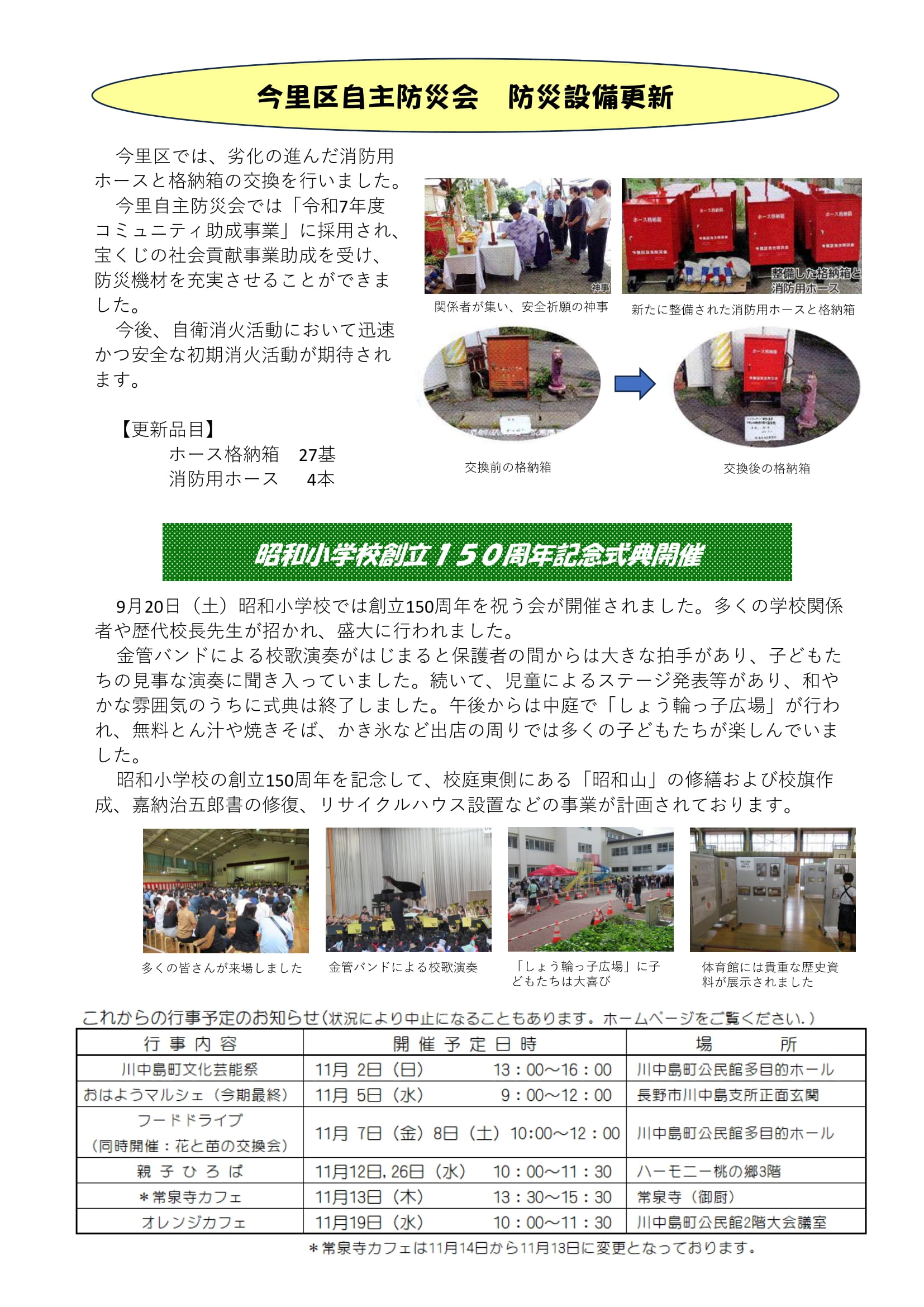 | 川中島町住民自治協議会  長野県長野市川中島町今井1762-1 TEL 026-405-5871 kawanakajichi@grn.janis.or.jp |